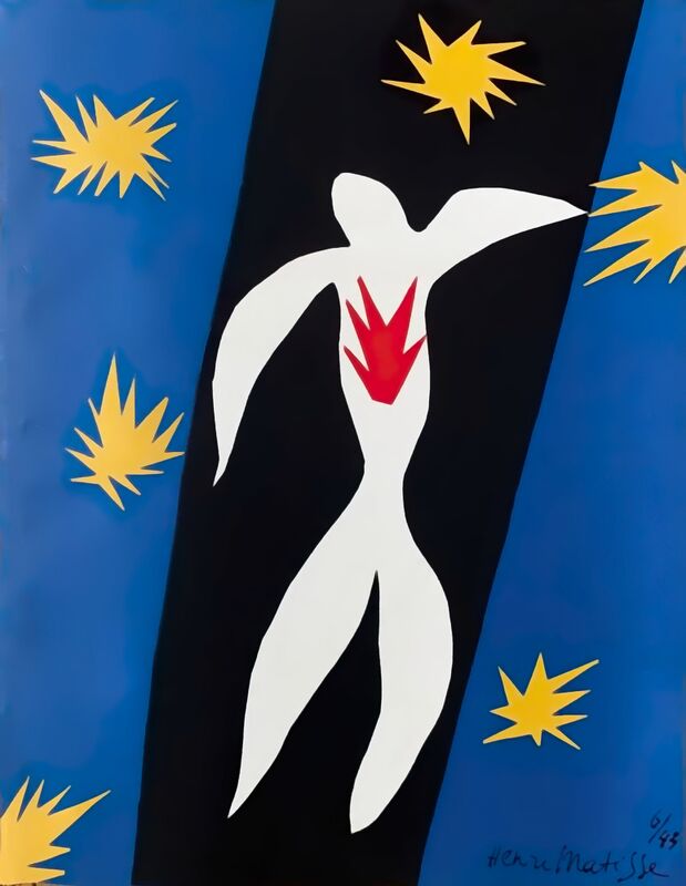 Icarus is an early modernist gouache painting created by henri matisse from 1943 to 1944... Icarus is an early modernist gouache painting created by henri matisse from 1943 to 1944. Icarus was a character from a celebrated greek myth that was quite popular as a subject among european painters.. Henri matisse icarus (icare) from jazz 1947 not on view;